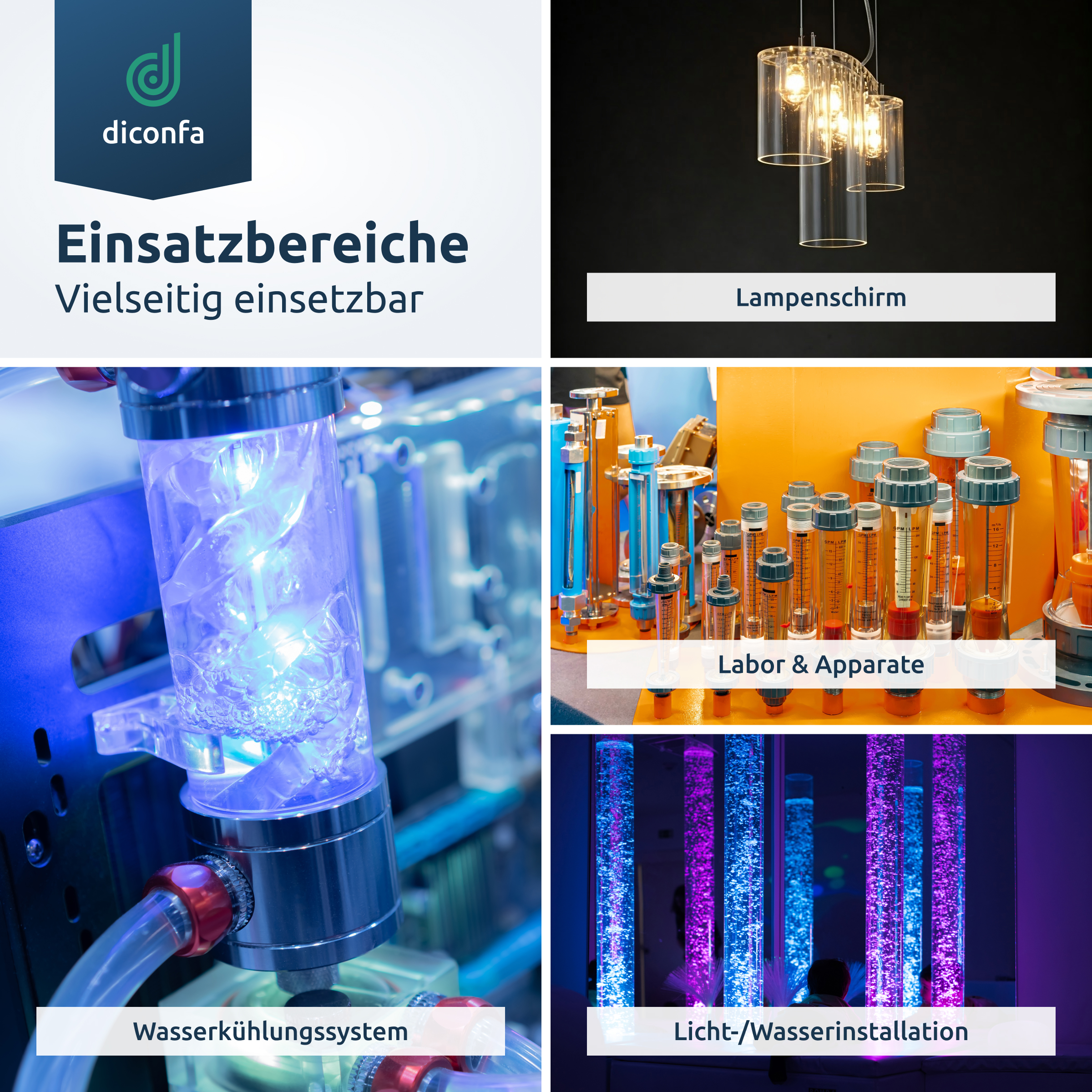 VIELFÄLTIGE ANWENDUNG: Optimal für Industrie, Handwerk, Kunstobjekte, kreative Designs, Möbelbau, Modellbau, Hotelausstattung, Gastronomie, Messe- und Ladenbau, Maschinen- und Anlagenbau, Treppen- und Geländerbau, Lebensmitteltechnik sowie Werbe- und Marketingzwecke. Ebenfalls ideal für Wasserleitungen, Aquarien, Terrarien und vieles mehr.