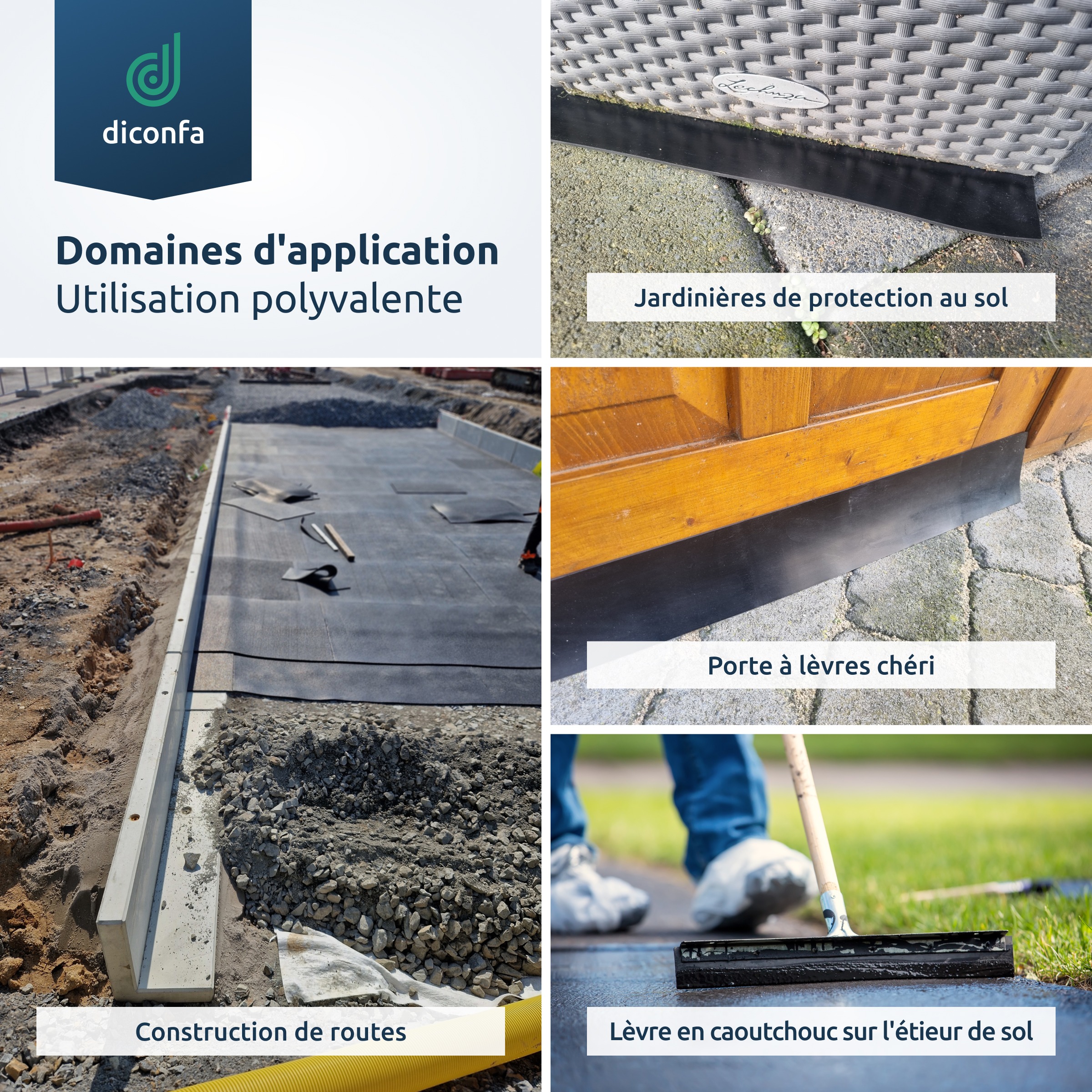 100% QUALITÉ : La bande en caoutchouc SBR est résistante aux intempéries, durable, flexible et polyvalente. Les tapis en caoutchouc étroits sont lisses des deux côtés, faciles à coller et fabriqués en Allemagne.