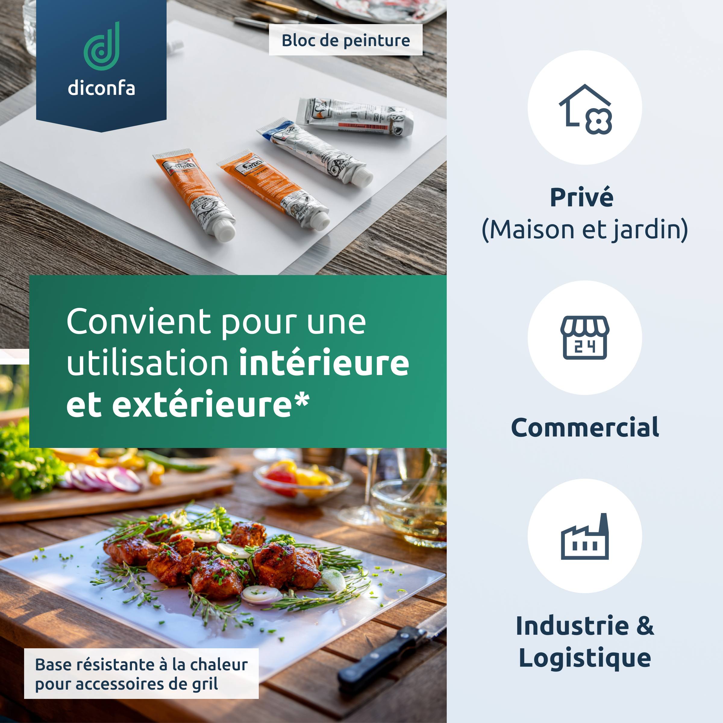 TRAITEMENT : Découpable avec des ciseaux ou un cutter – pour des résultats précis, l’utilisation d’un gabarit est recommandée.