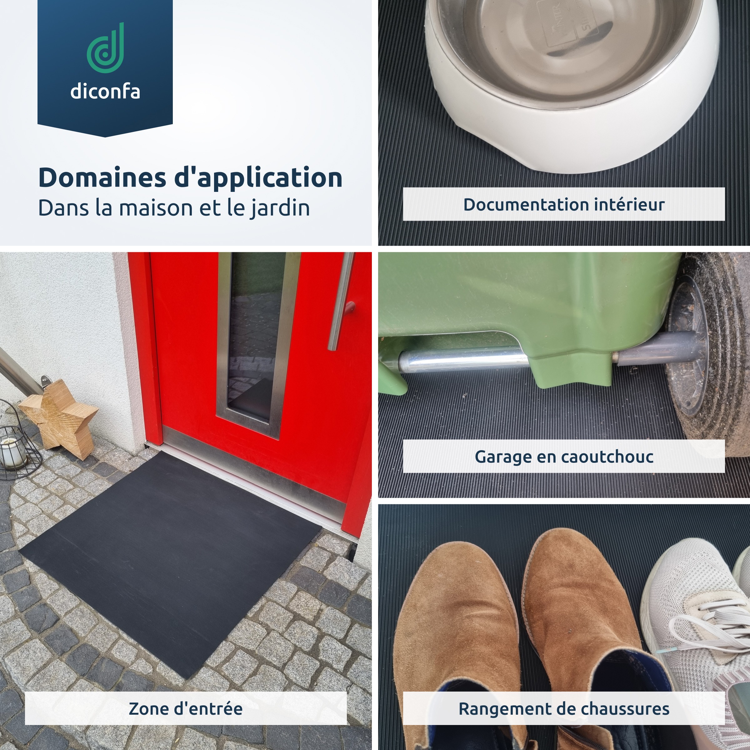 100 % QUALITÉ : Le tapis universel en caoutchouc diconfa avec profil finement rainuré séduit par sa qualité durable et ses nombreuses possibilités d’utilisation. D’une épaisseur de 3 mm, il est résistant et adapté à une utilisation intensive en intérieur comme en extérieur.
